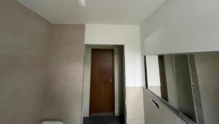 Aufbau, Vliestapete und Anstrich für einen glatten Übergang zur Fliese ohne Staubkante